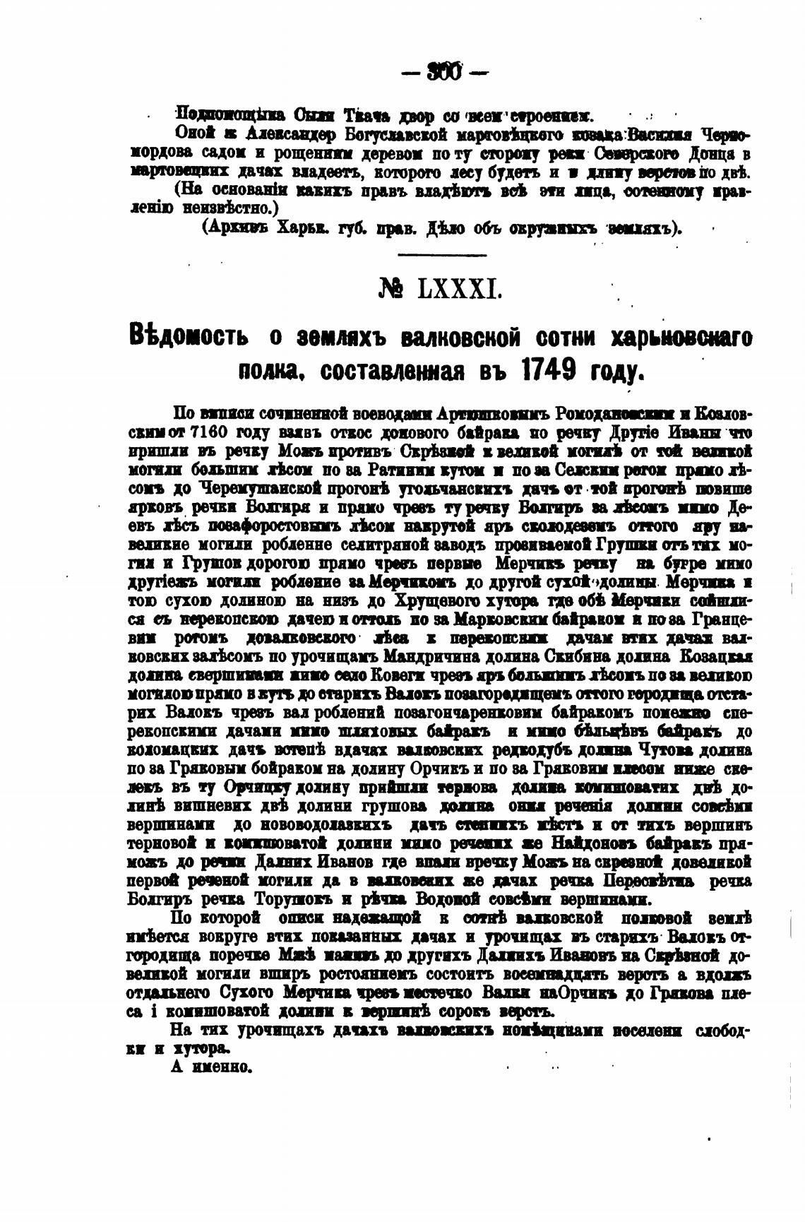 В%доиость о земмхъ валковый сотни харьпиго