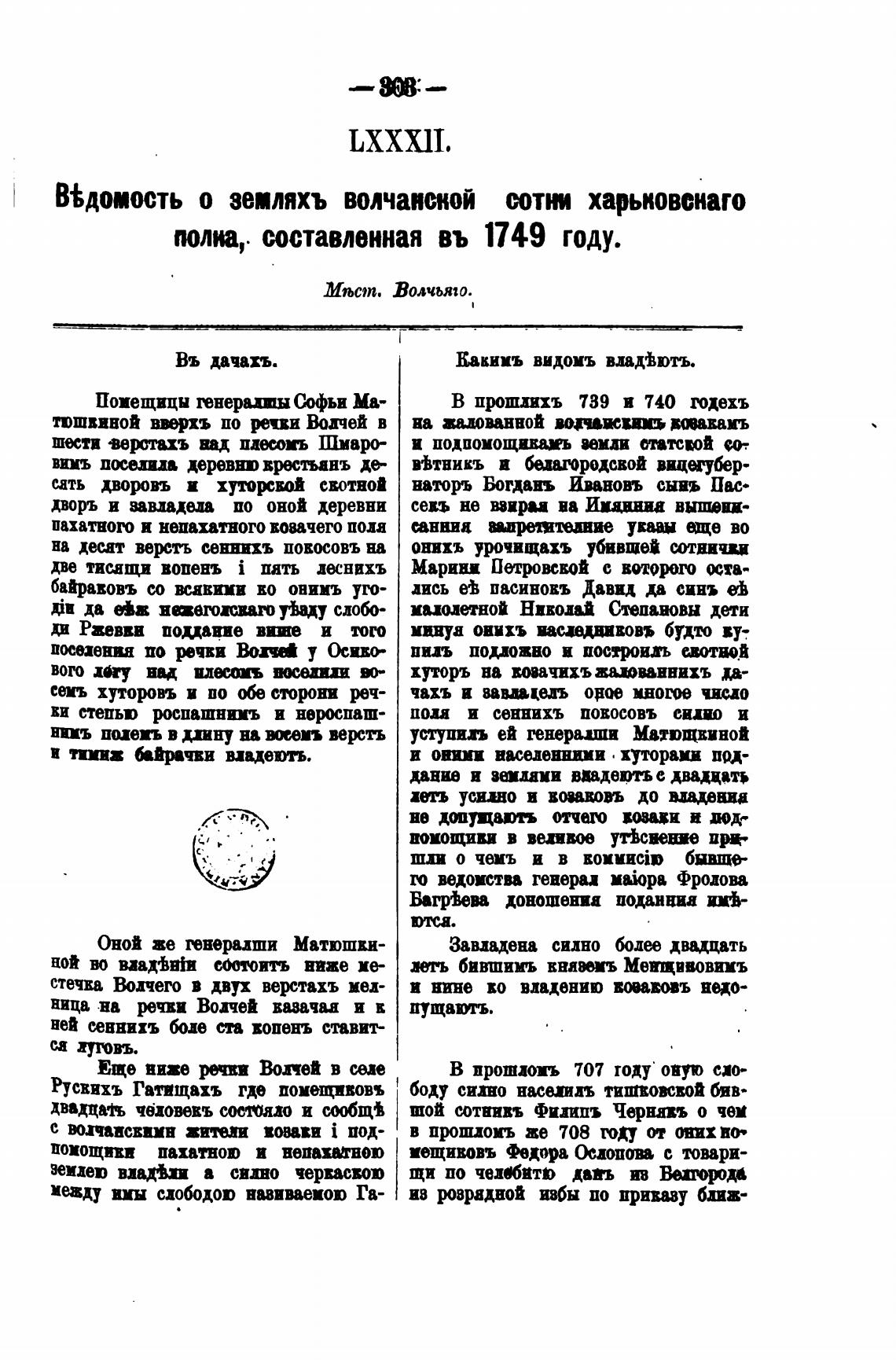 В±домость о земяхъ волчанской сотк харьковснаго