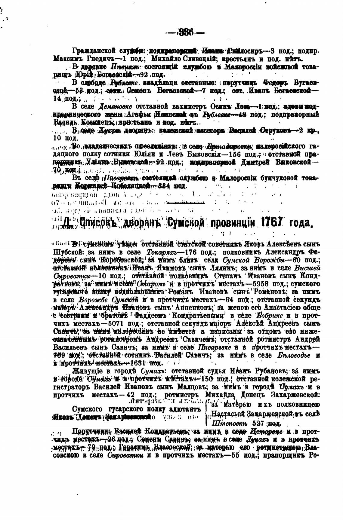 •соивою в селе Сороватхи и в протчихъ митахъ—бб под; прпорщи*ъ Ро-
