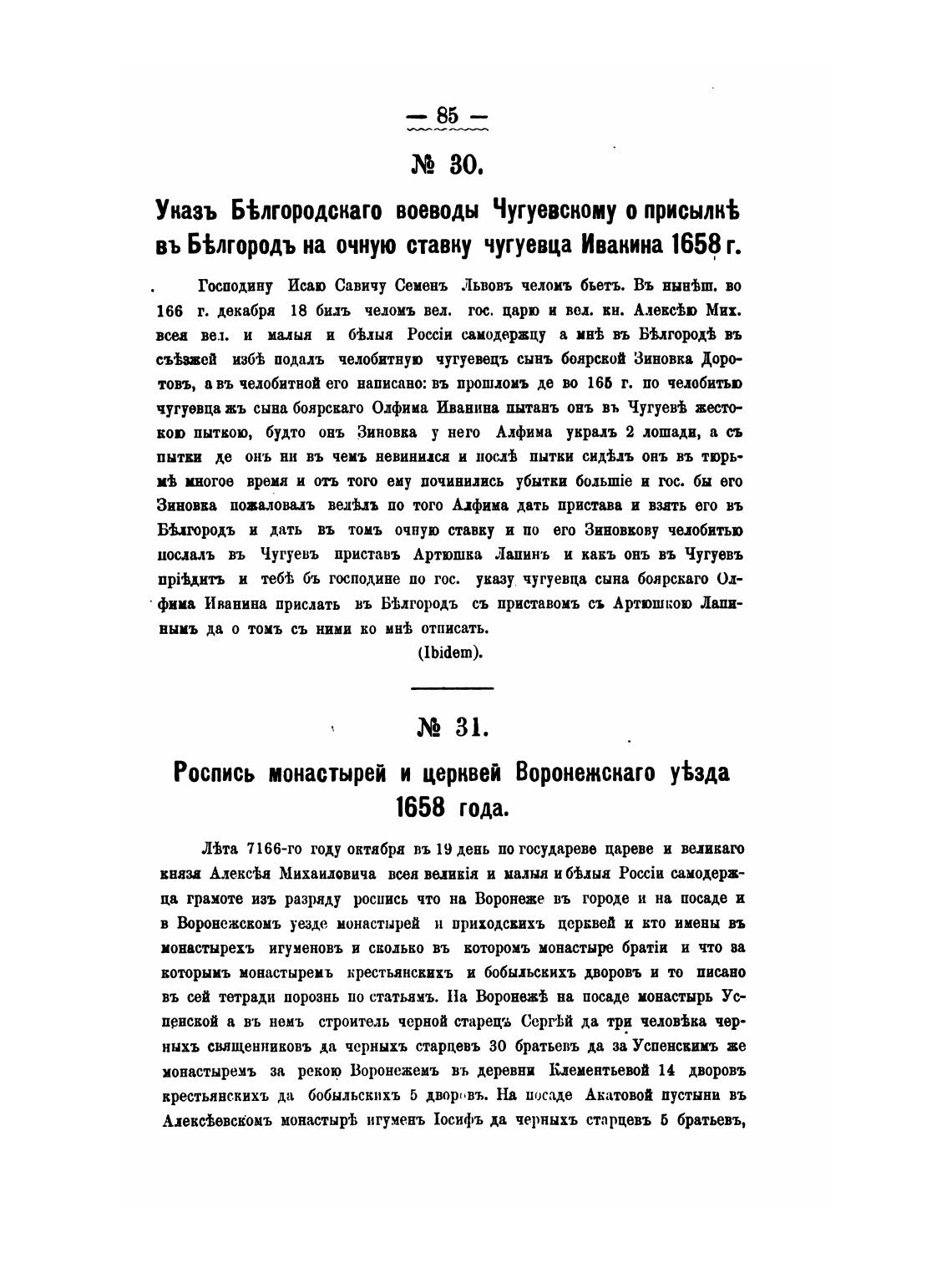 %въ Б%лгородъ на очную ставну чугуевца Иванина 1658 г.
