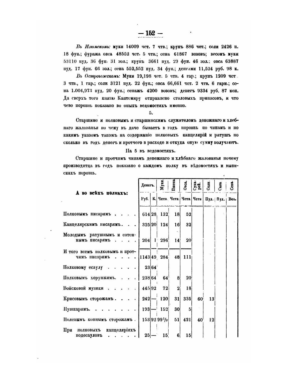 18 фуи.; фуража овса 48552 чет. 5 чтв.; сена 61867 возовъ; весомъ муки