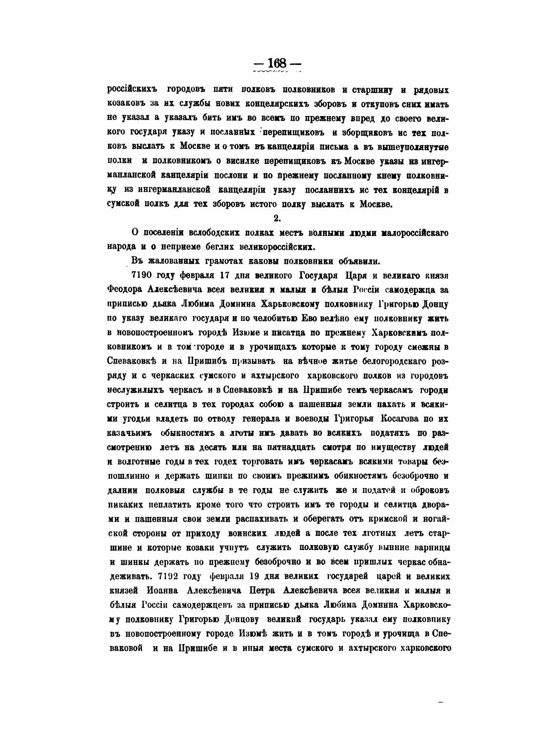 приписью дьава Любима Домнина Харьковскому полковнику 1'ригорьо Донцу