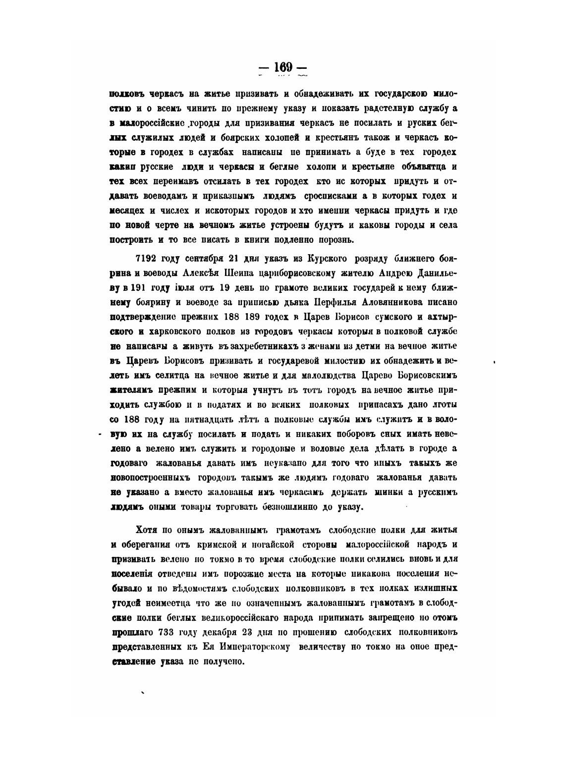 Хотя по онымъ жалованнымъ грамотамъ слободские полки дла житья