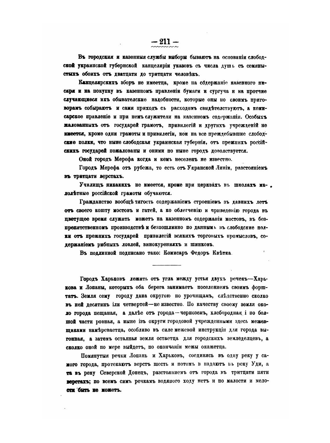 Въ поџинной подписано тако: Комисаръ Федоръ КвКка