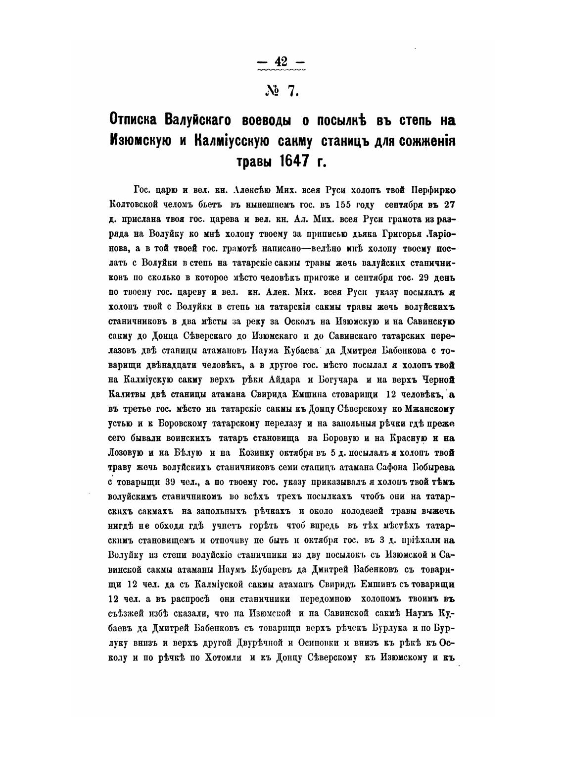 траву жечь волуйскихъ станичниковъ семи стаиицъ атамана Сафона Бобырева