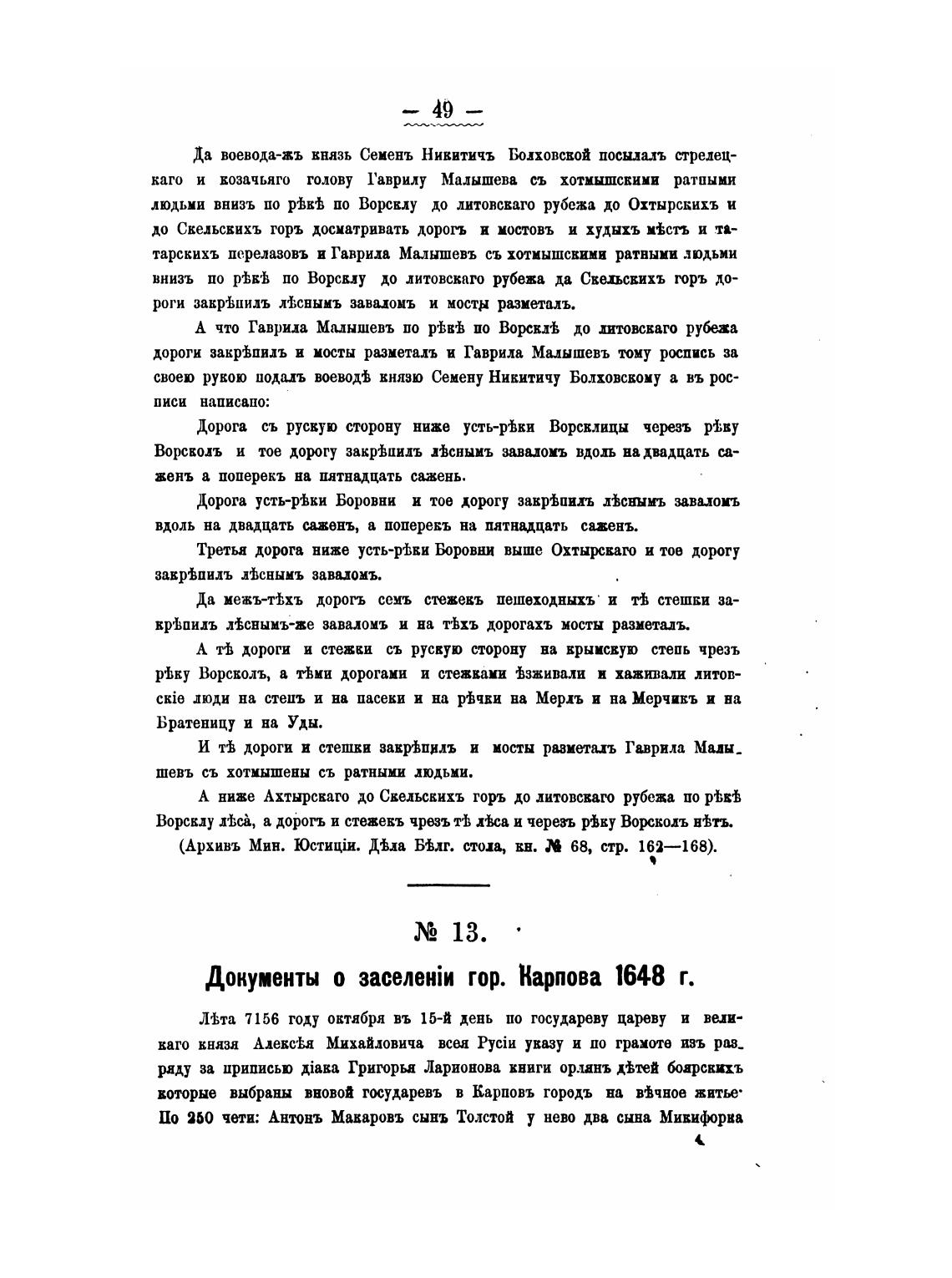 Документы о гор. Карпова 1648 г.