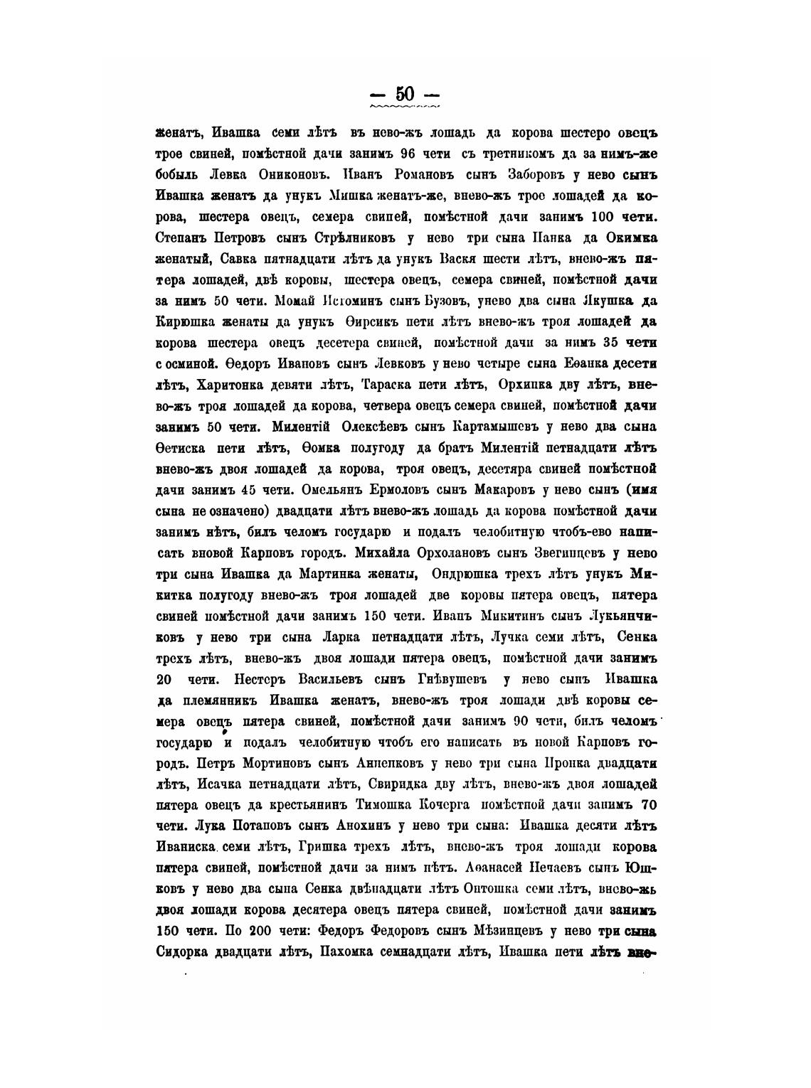 свиней пом±стной дачи занимъ 150 чети. Иваиъ Микитинъ сынъ Лукьянчи-