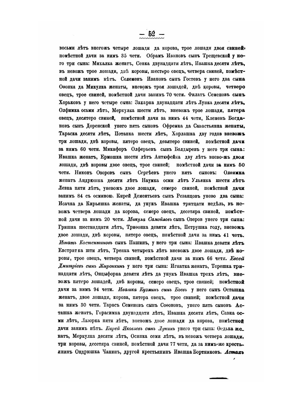 овецъ, трое свиней, пойстноЙ дачн занимъ 70 чети. Филать Сеценовь сынъ