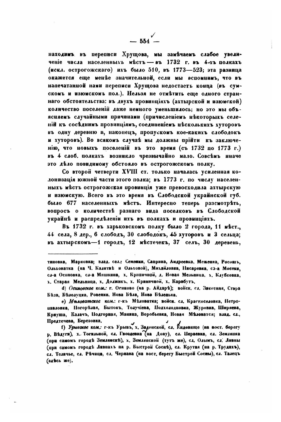 Въ 1732 г. въ харьковскомъ полку было 2 города, 11 м%ст.,