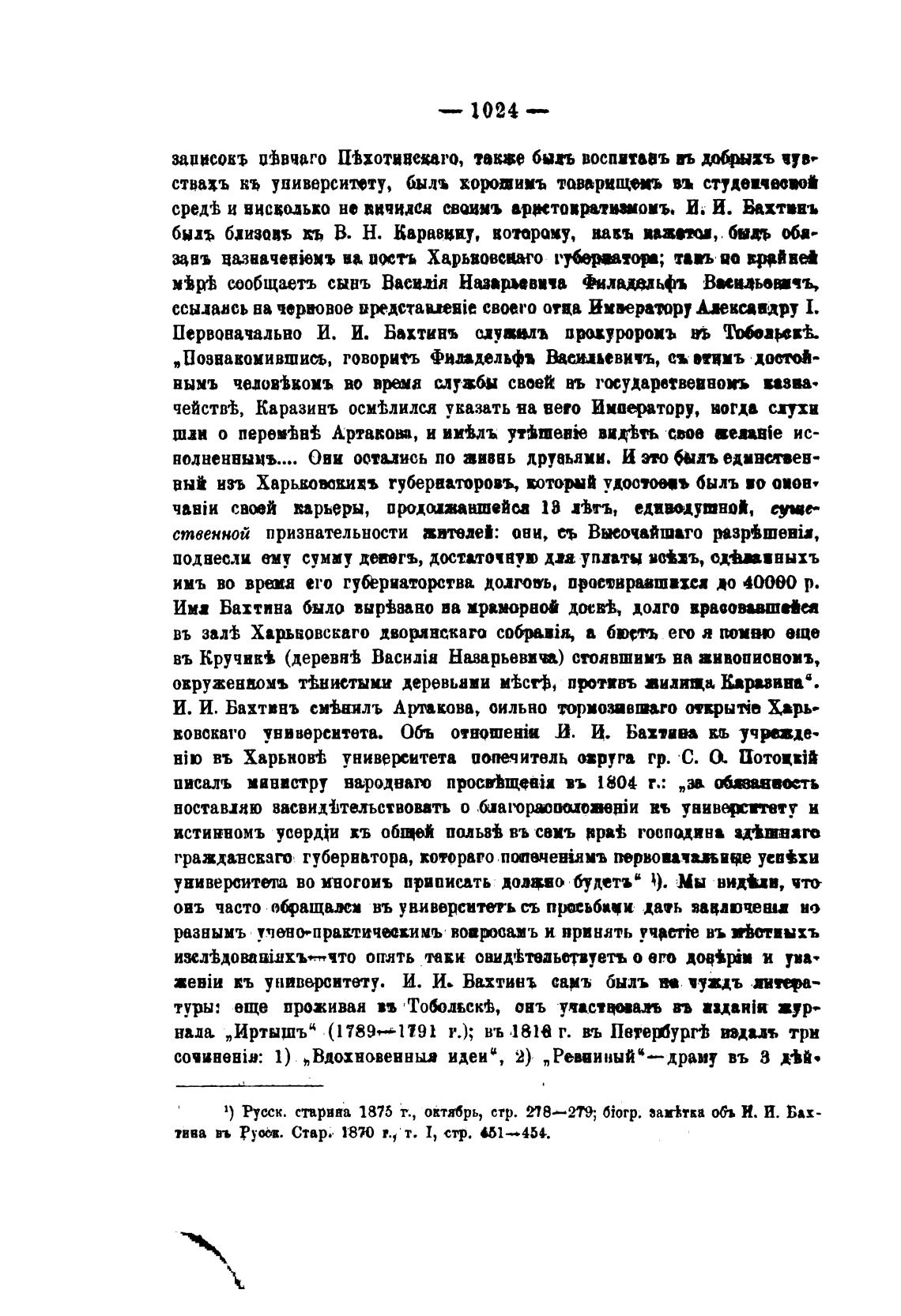 Первовачадьно И. И. Бахтинъ слуввлгь п»хумоиъ T*zprh.