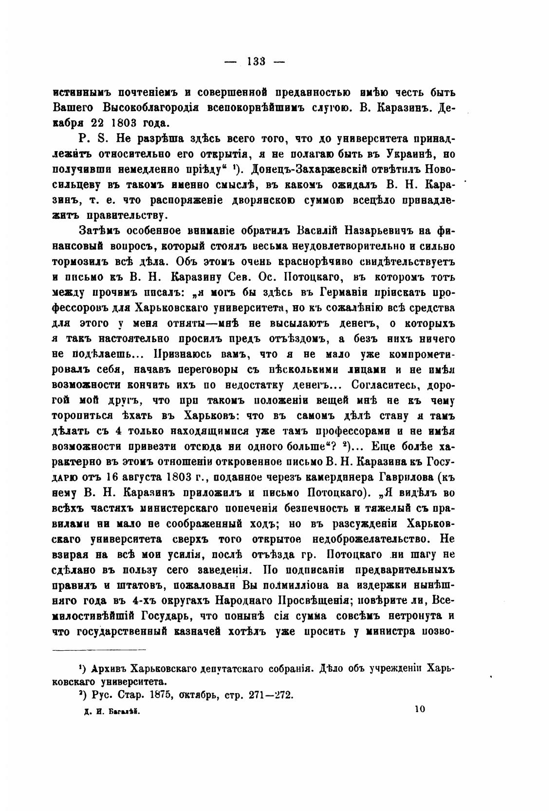 Вашего всеповорнјйшимъ слугою. В. Каразинъ. Де-