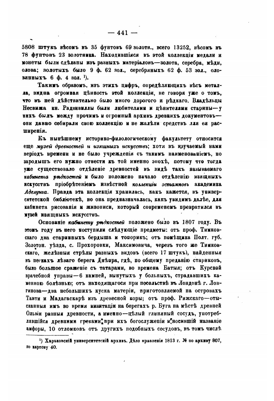 1) Xapbk0BcEii университетсвТ архивъ. Тло HpaB.':eHiR 1813 г. по архиву 807,