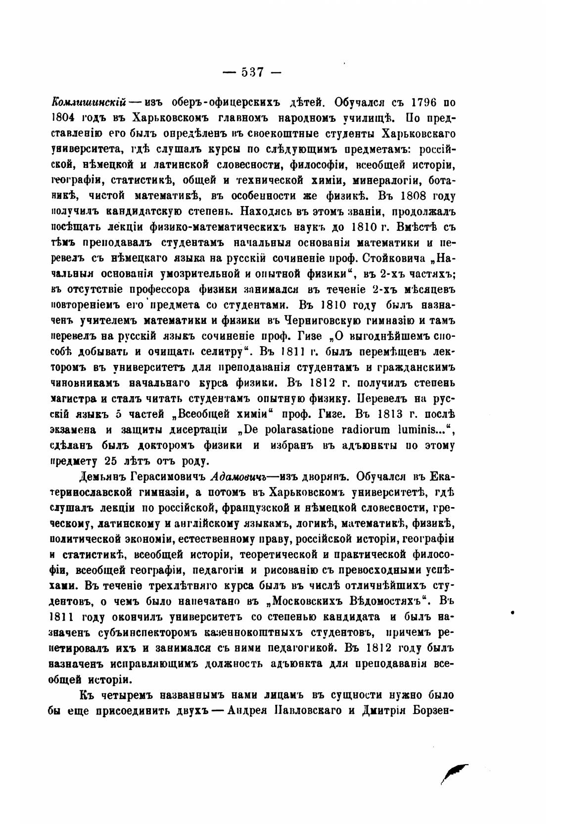теривославской а потомъ въ Харьковскомъ университей;,