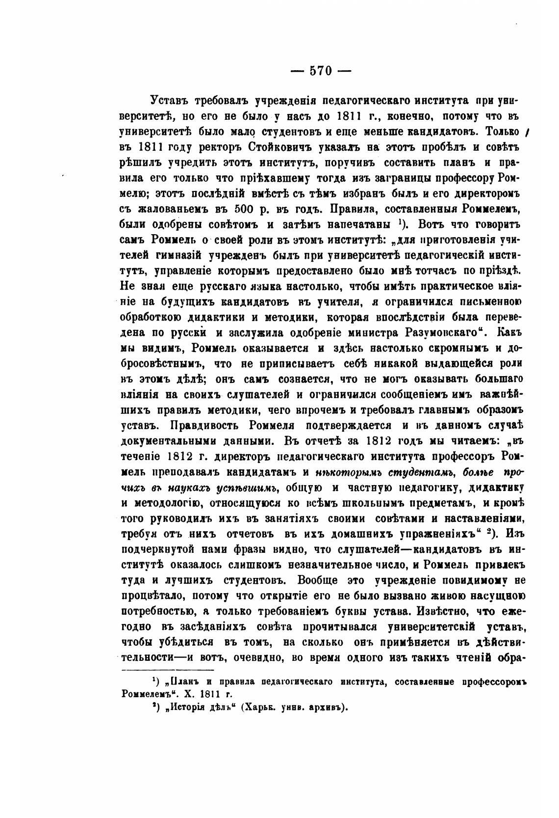 TegeHie 1812 г. диревторъ педагогическаго института профессоръ Ром-