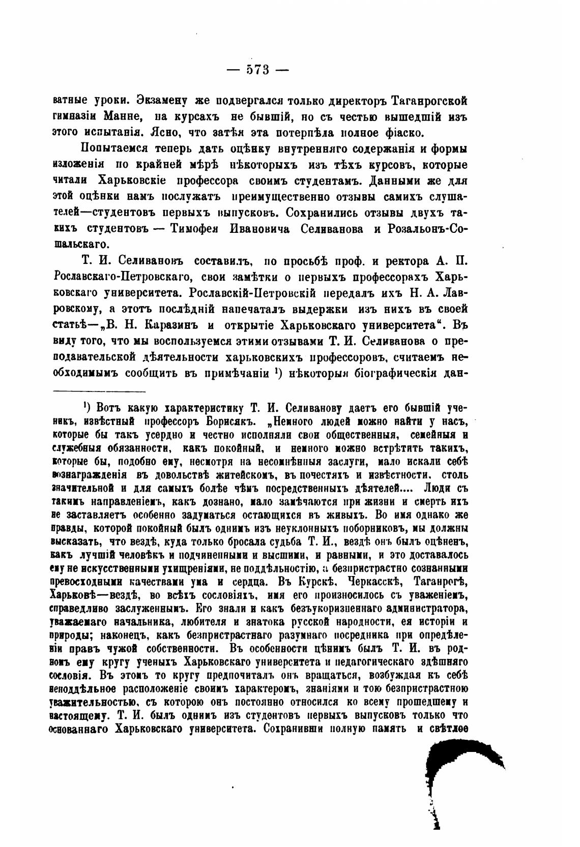 1) Вотъ какую характеристику Т. И. Селиванову даетъ его уче-