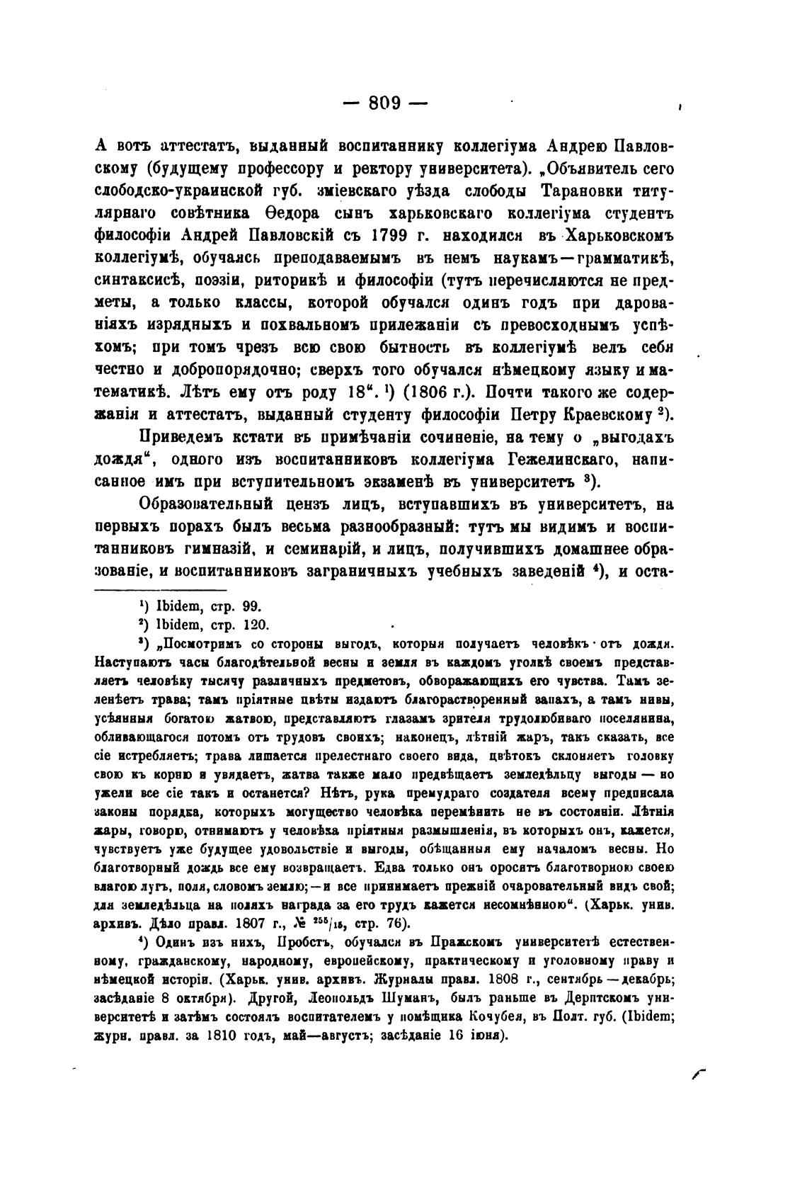 и аттестатъ, выданный студенту Петру Краевскому 9).
