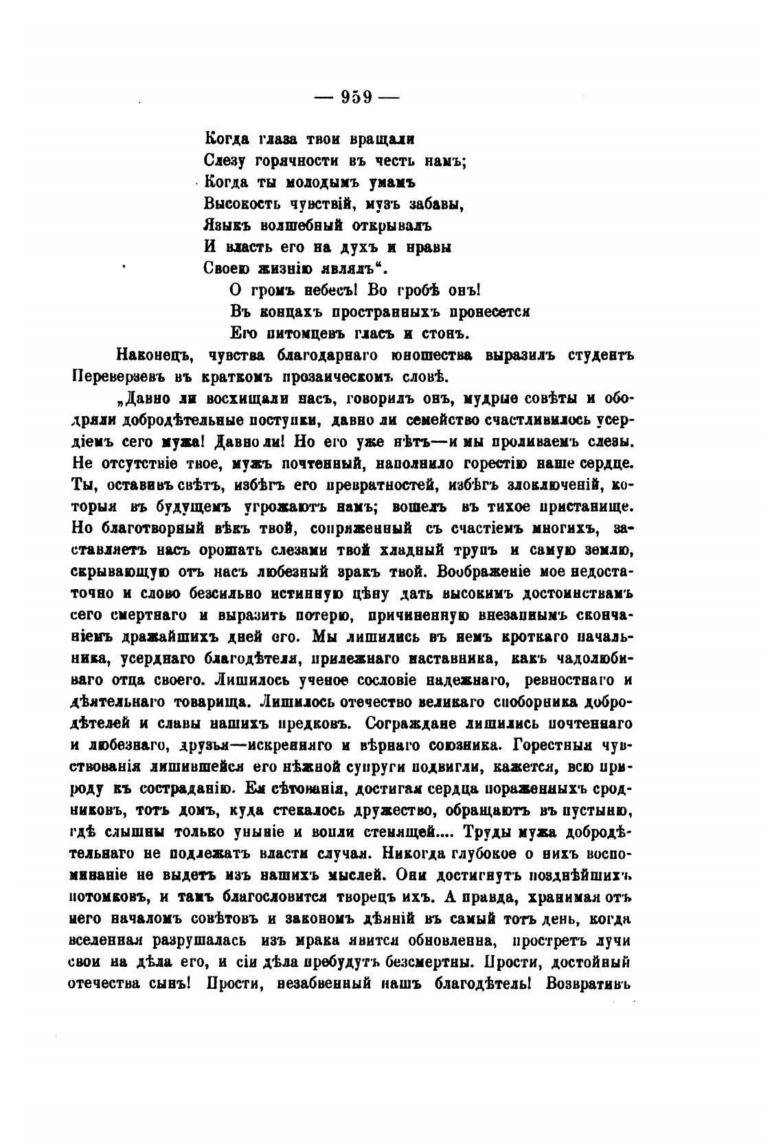 отечества сывъ! Прости, незабвенный нашь благод•ътель! Возвративъ