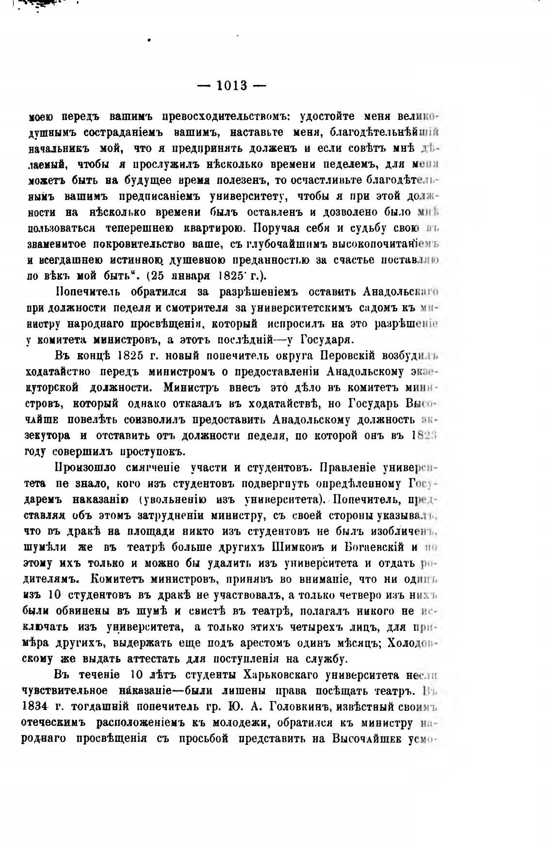 Въ вонцгЬ 1825 г. новый попечитель округа возбудилъ