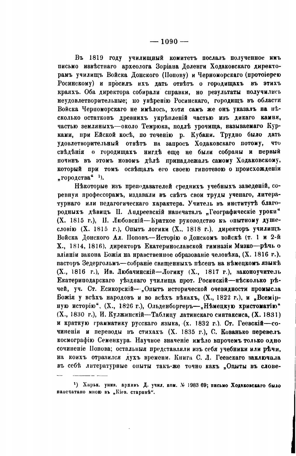 1) Харьк. унив. архивъ Д. учил. кон. 1983 69; письмо Ходаковсиго было