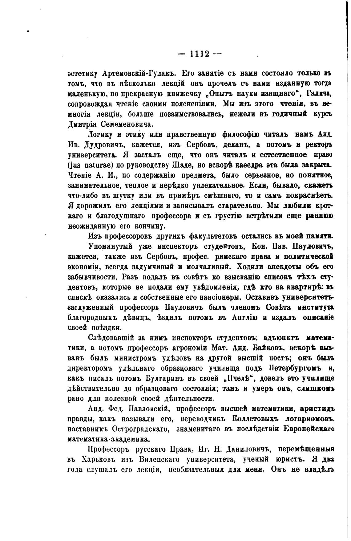 Упомянутый уже инспекторъ студентовъ, Кон. Пав. Паудовичъ,