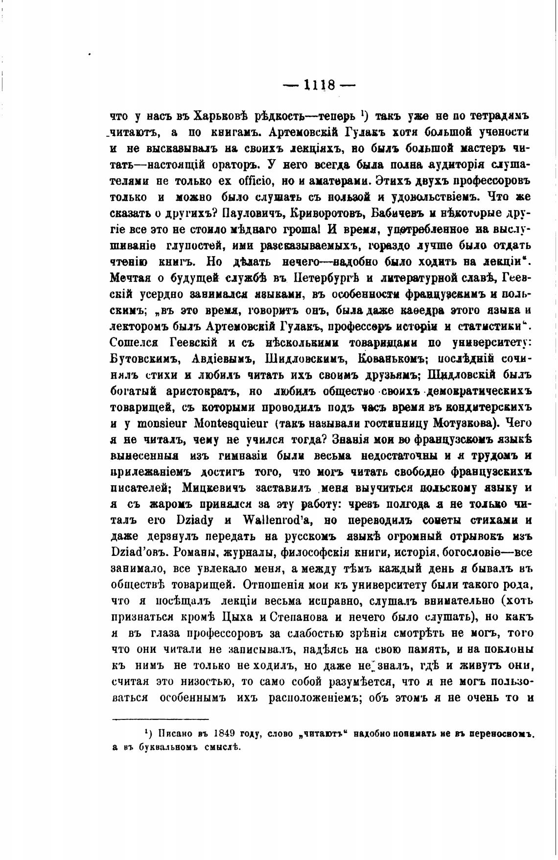 1) Писано въ 1849 году, слово „читаютъ” надобно повивать не