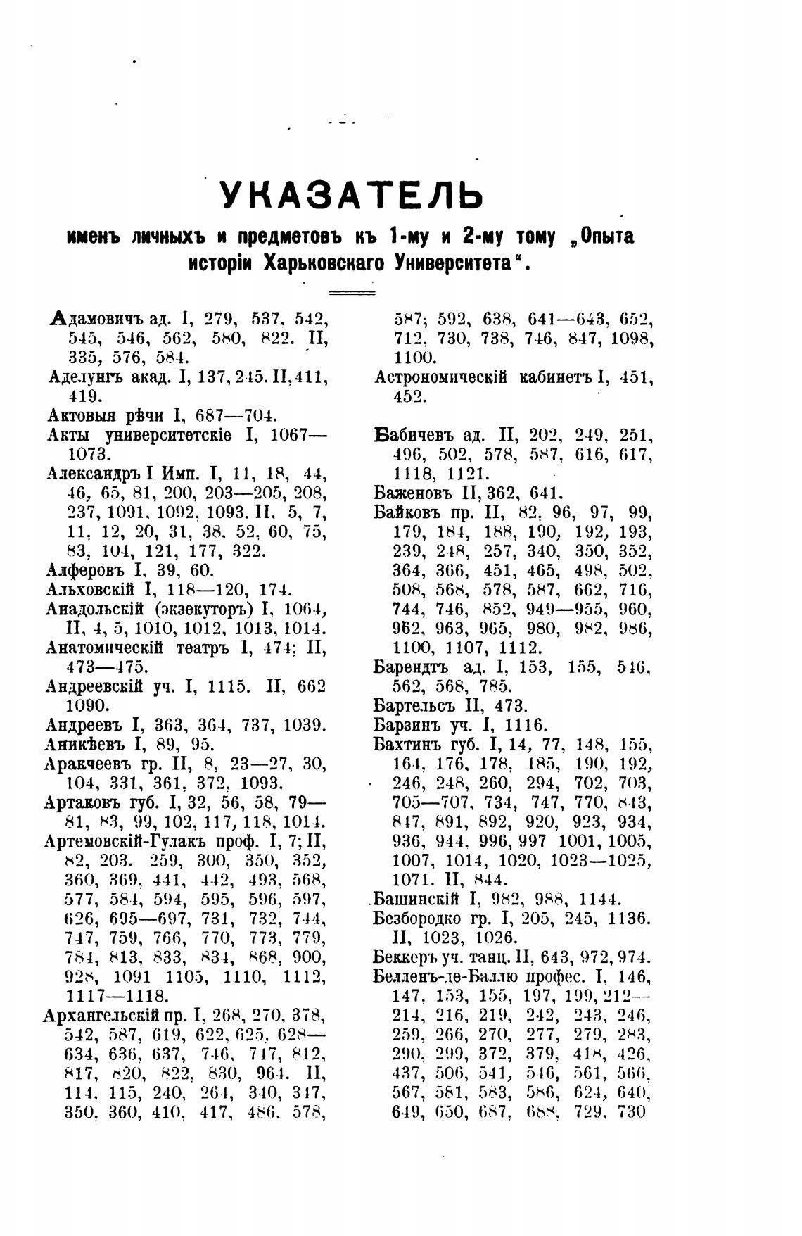 имень личныхъ и предметовъ кь 1-му и 2-му тому