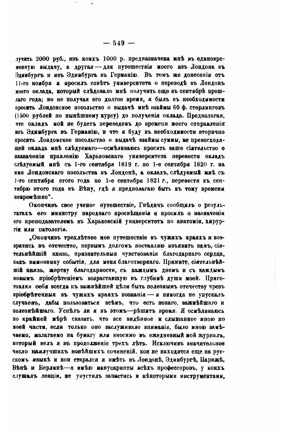 „Окоџчивъ трехл±тнее мое въ чужихъ краахъ и воз-