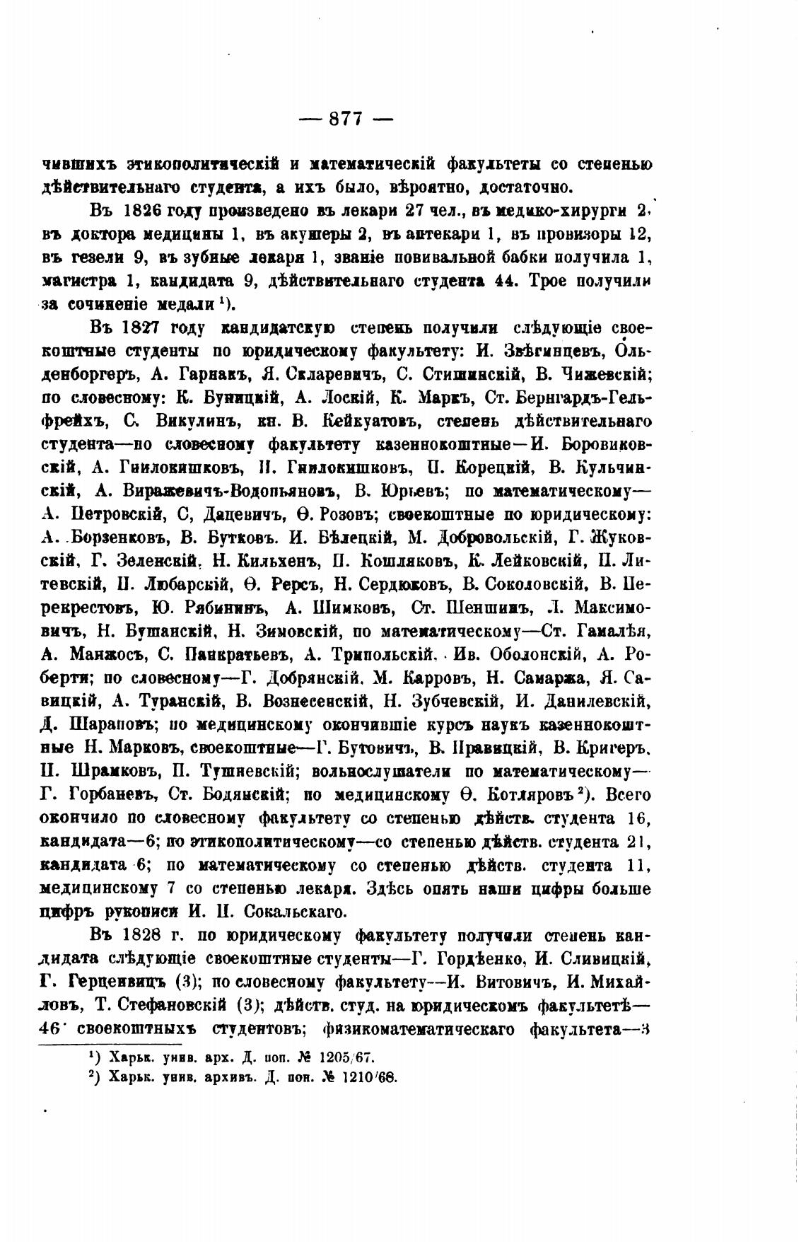 1) Харьк. унив. арх. Д. иоп. 1205;67.