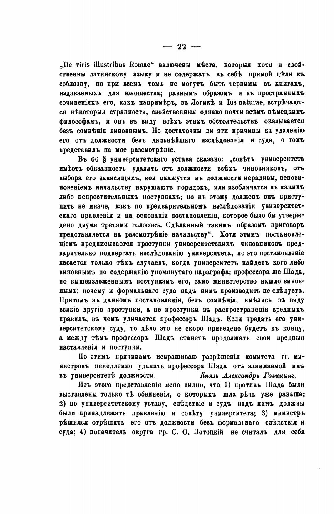 нистровъ немедленно удалить профессора Шада отъ занимаемой инъ