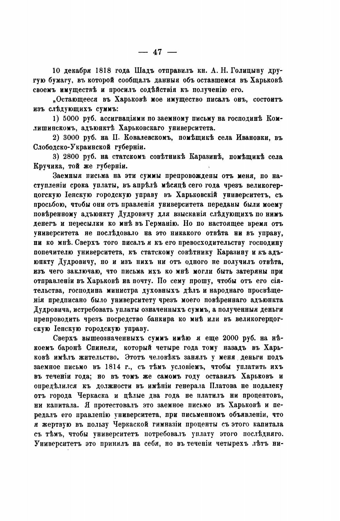 10 декабря 1818 года Шадъ отправилъ кн. А. Н. Голицыну дру-