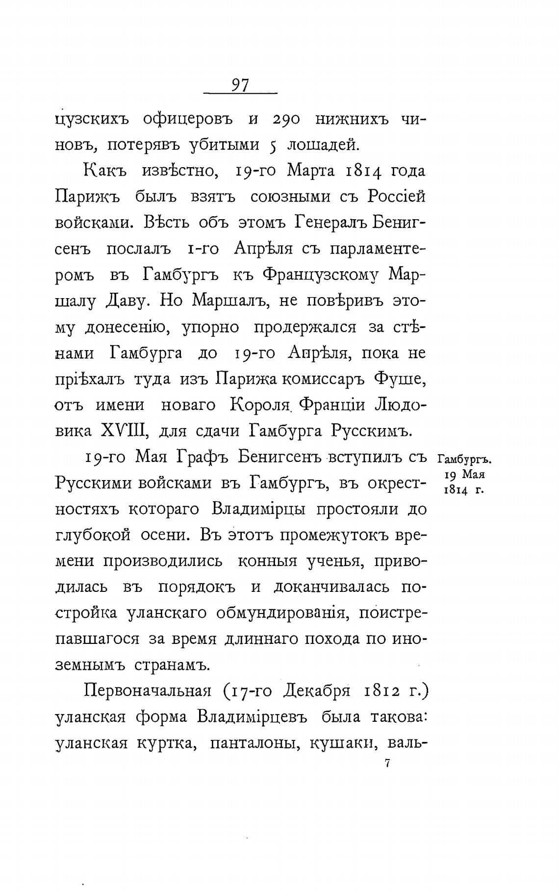 19-го Мая Графъ Бенигсенъ вступилъ съ Гамбургъ.