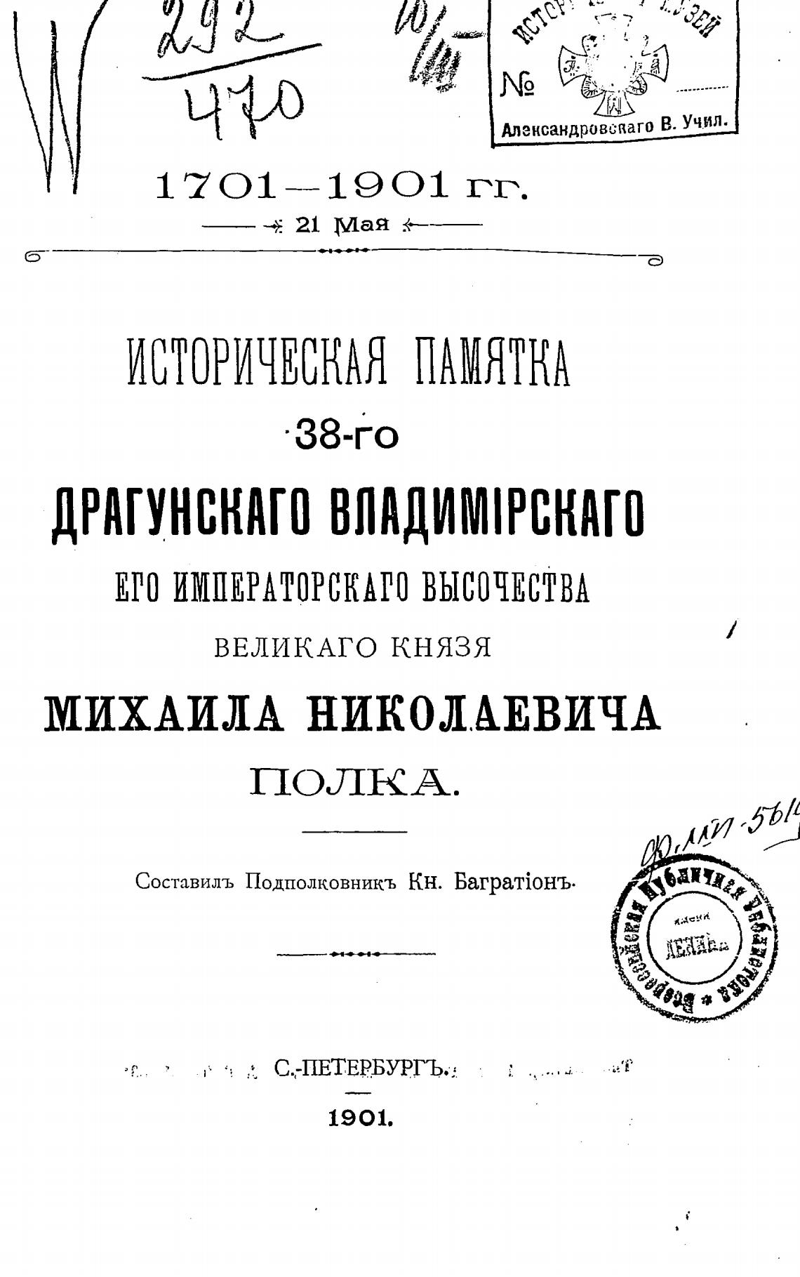 Составилъ Подполковникъ Кн.
