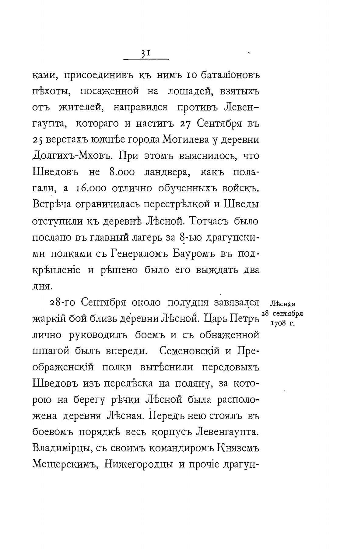 бой близь дёревни Л“Ьсной. Царь Петръ