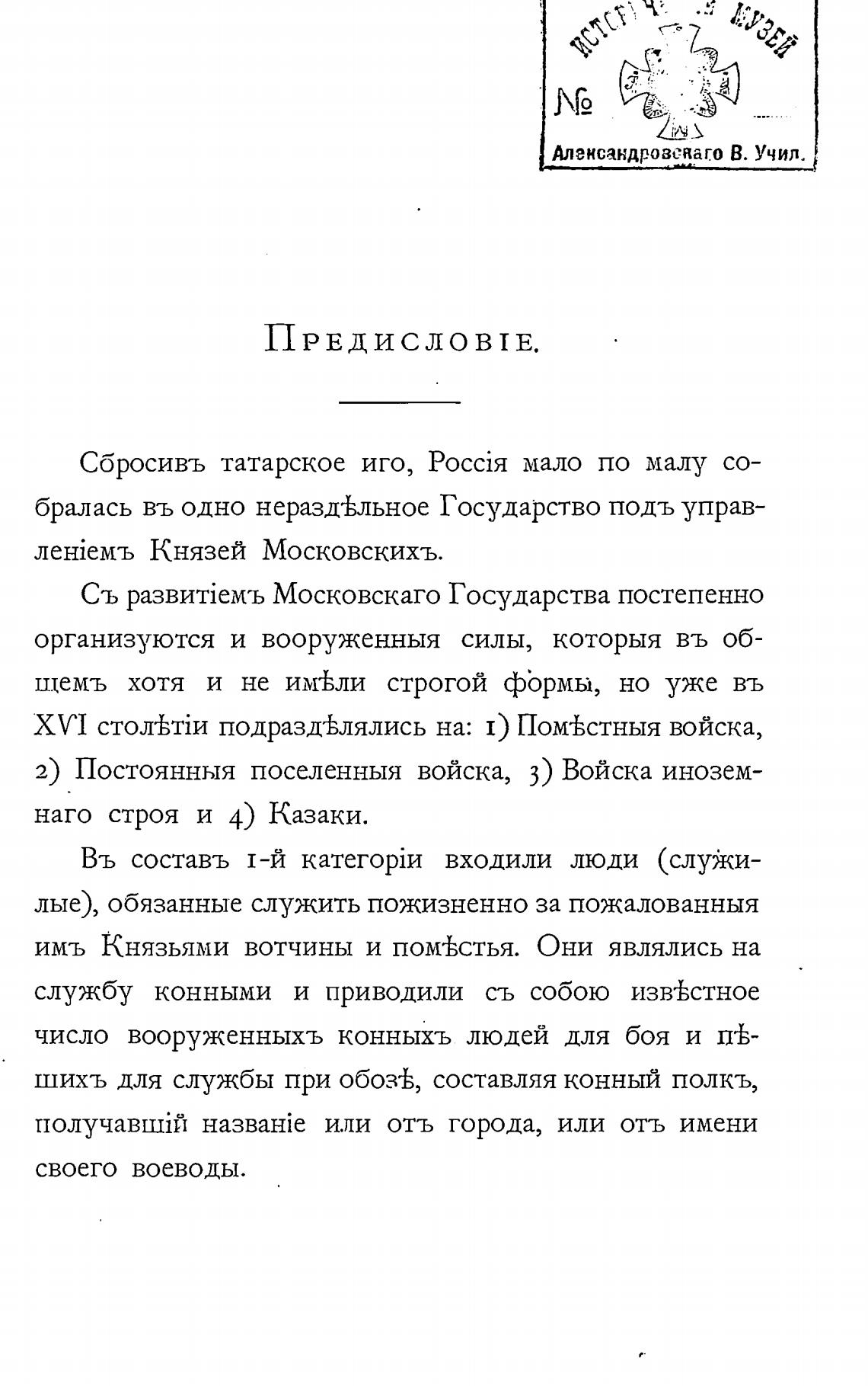 XVI подразд±лялись на: 1) Пом±стныя войска,