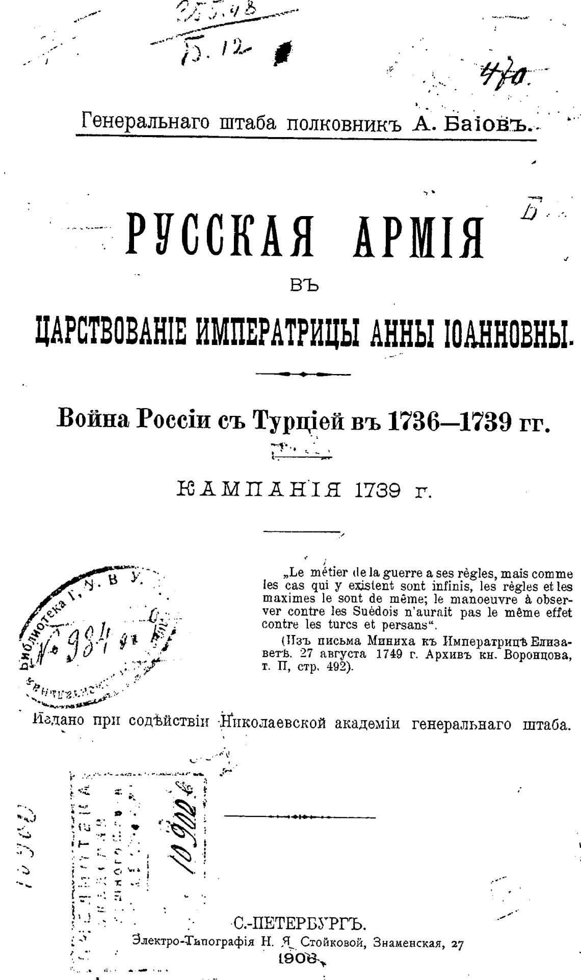 Генеральнаго штаба полковникъ А. БаЈоЁъ..