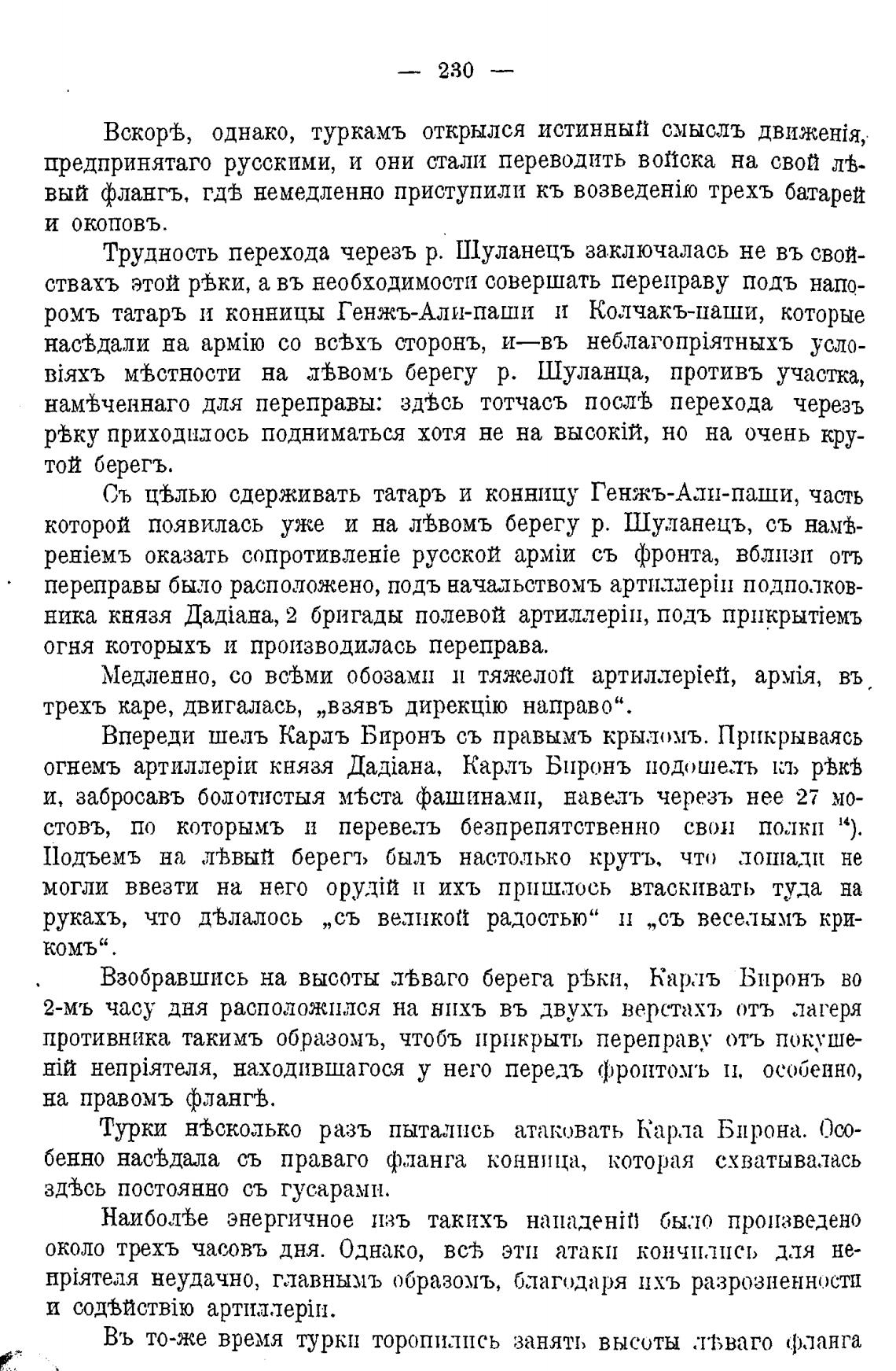 стовъ, по которымъ и перевелъ безпрепятственно свои полкп 14).