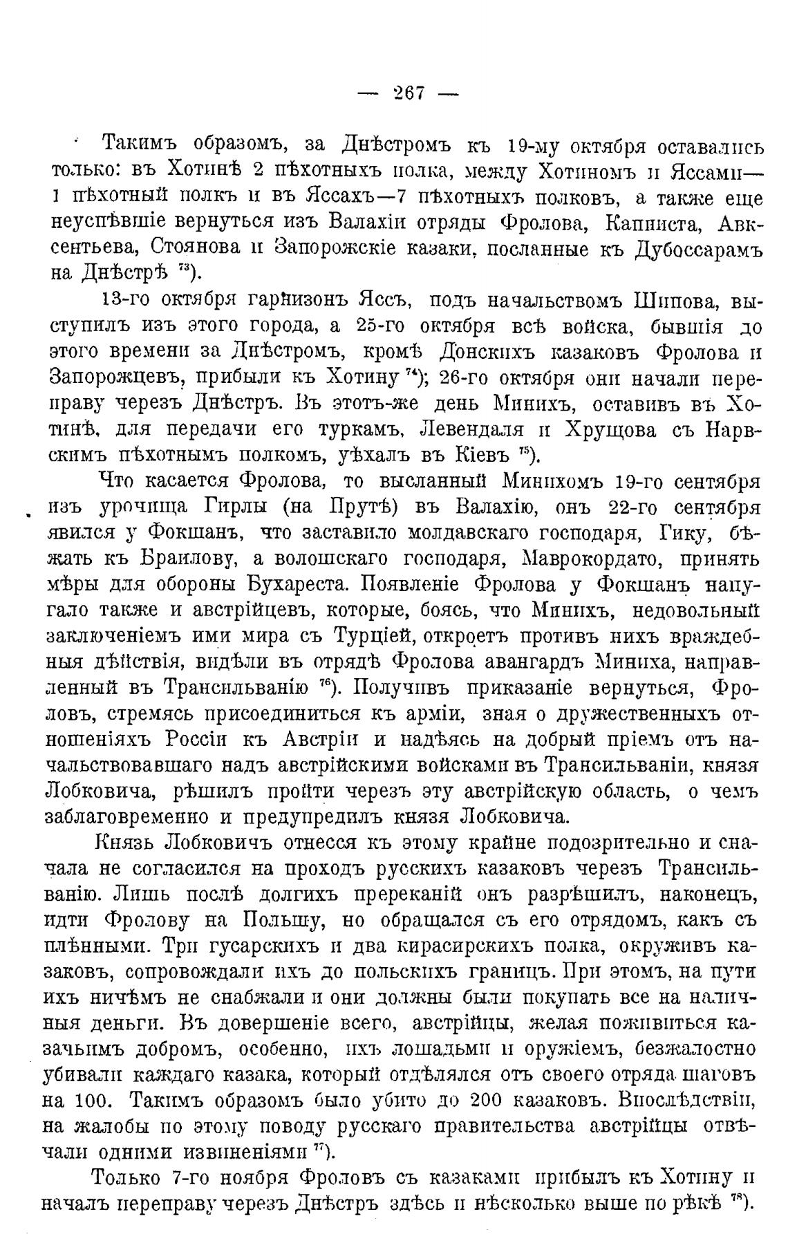 этого времени за Дн±стромъ, кромФ) Донскихъ казаковъ Фролова и