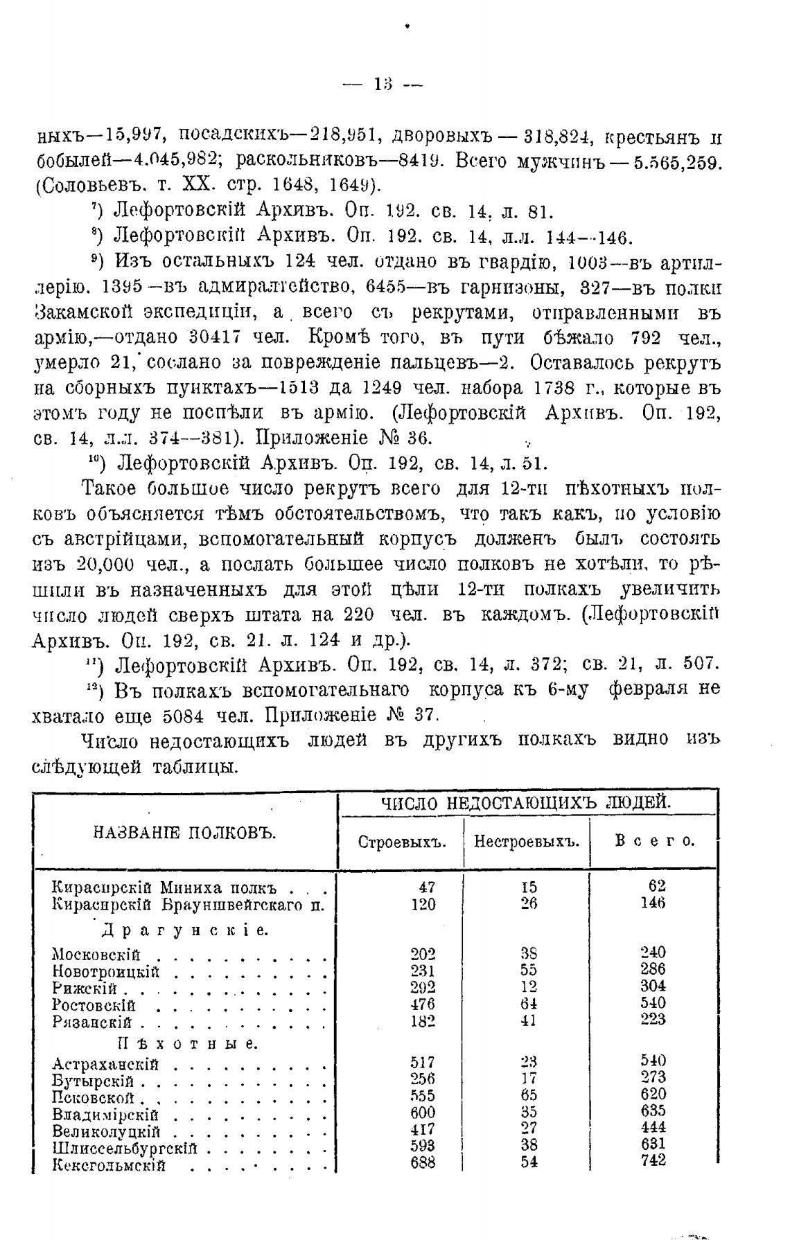 Чишш недостающихъ людей въ другихъ полкахъ видно изъ