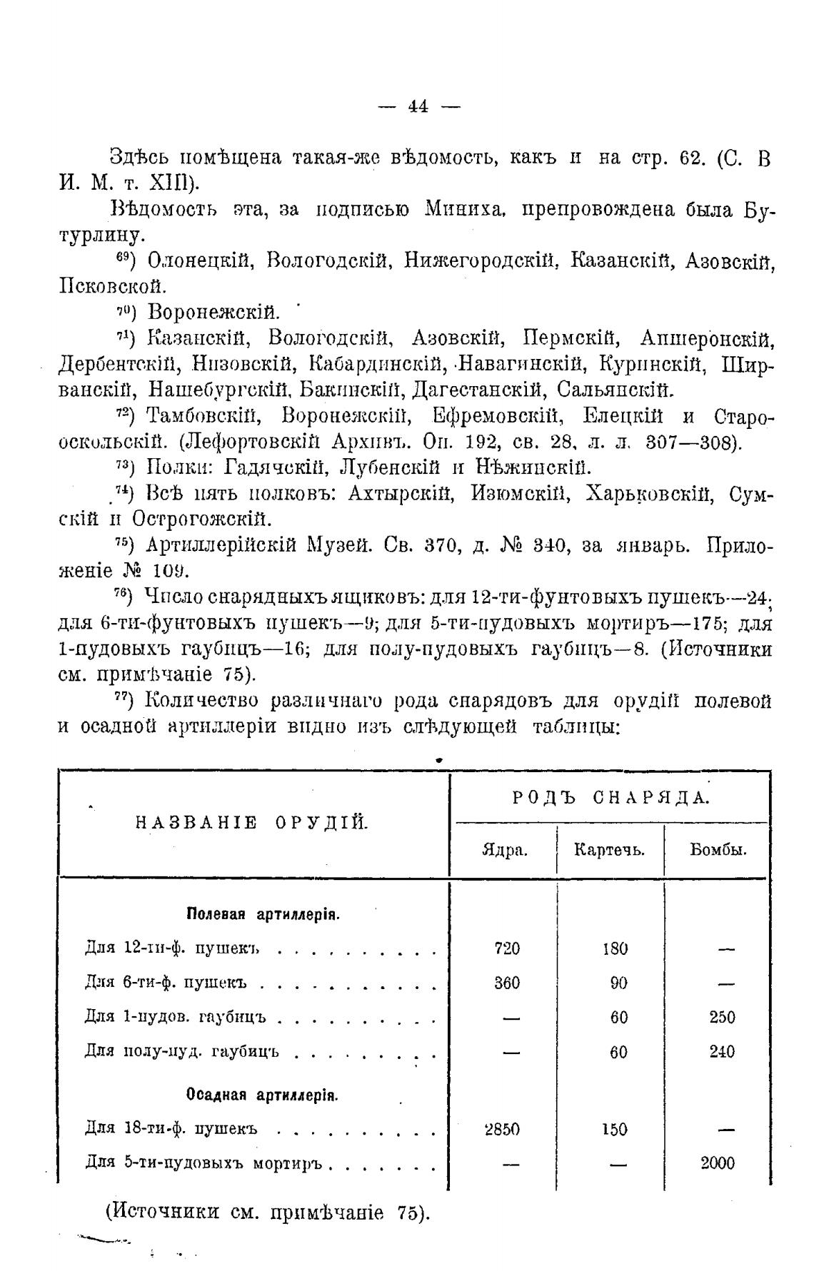 76) Число снарядныхъящиковъ: для 12-ти-фунтовыхъ пушекъ-—24.