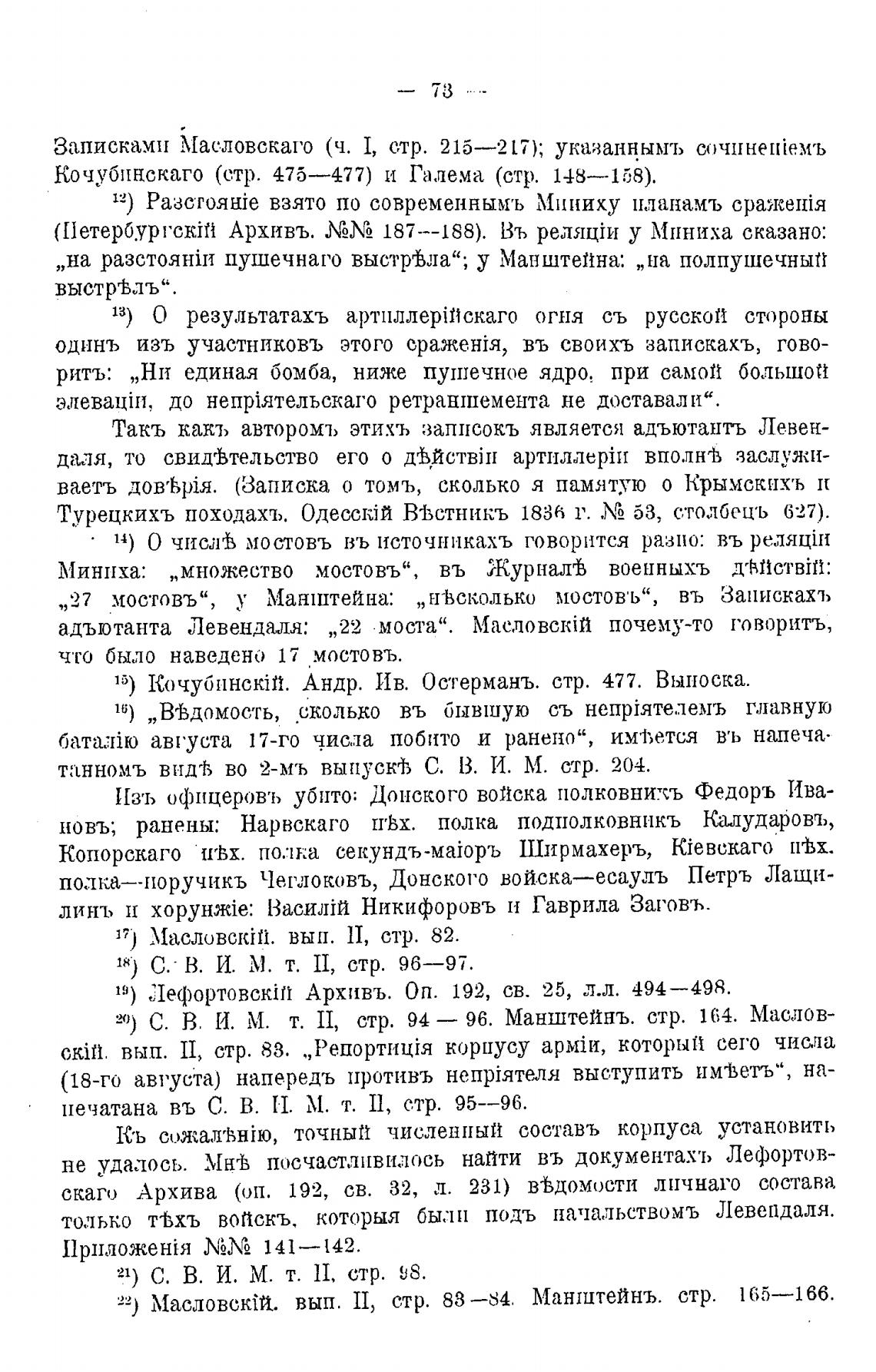 20) С. В. И. М. т. П, стр. 94 — 96. Манштейнъ. стр. 164. Маслов-