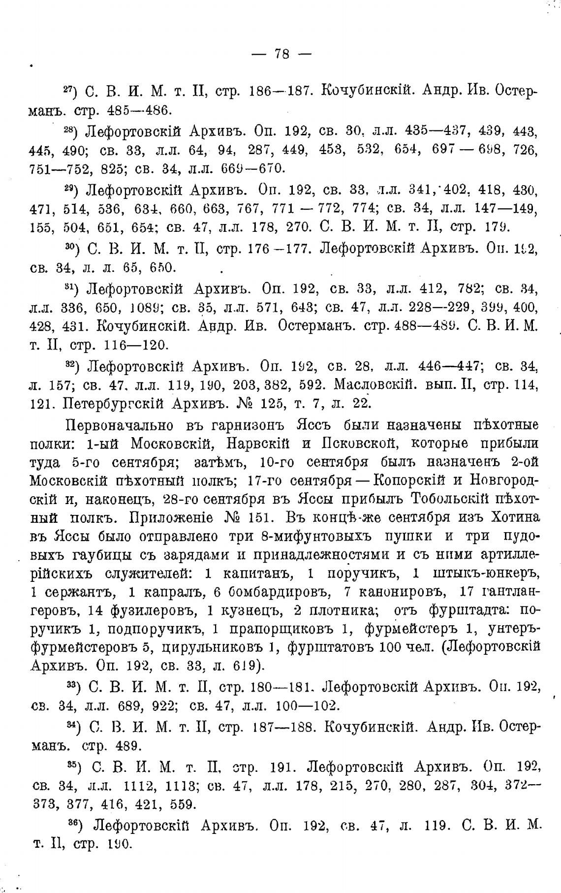 31) ЛефортовскЈй Архивъ. Оп. 192, св. 33, л.л. 412, 782; св. 34,