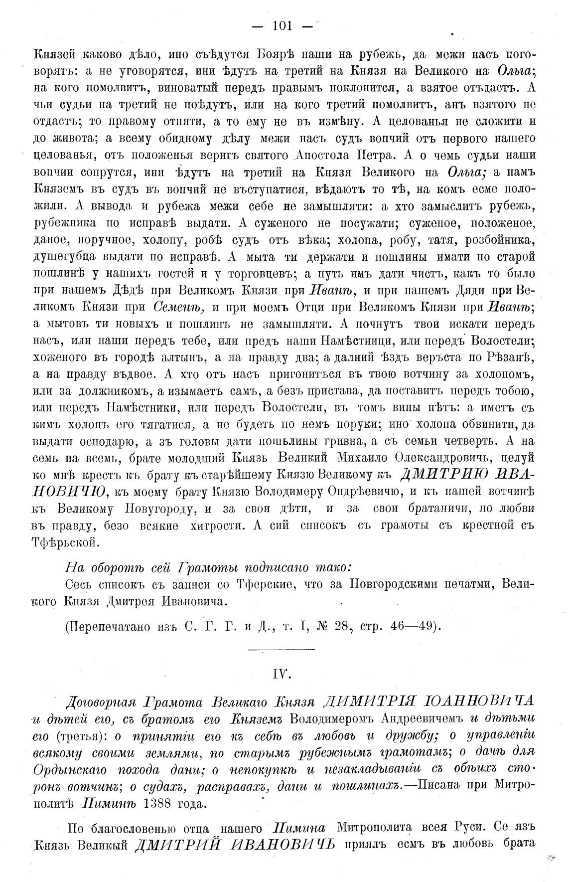 Договорная Грамота Великаго князя ДИМИТРИ ЮАННОВПТА
