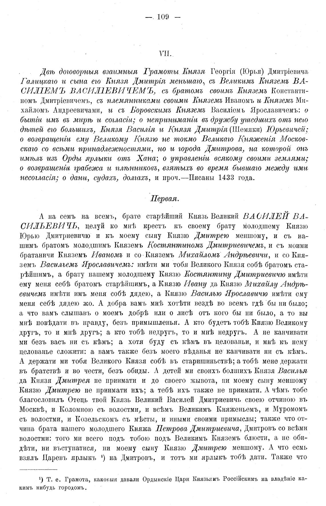 1) Т. е. Грамота, какое,ыя давали Ордыншйе Цари Князьяиъ на владгВнт ка-