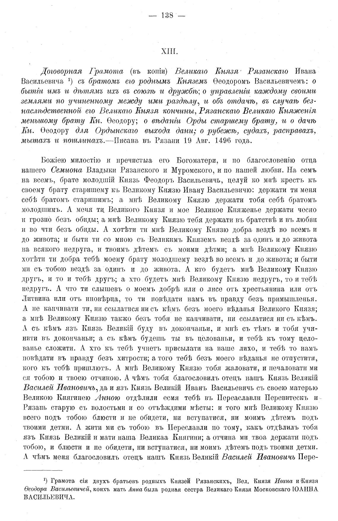 1) Грамота сЈя двухъ „братьевъ родныхъ Князей Рязанскихъ, Вел. Князя Ивана и Князя