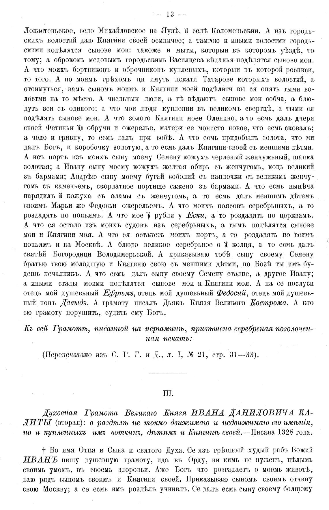 но и купленнысб имб вотчинб, тьтямб и Княшнть своей.—Писана 1328 года.