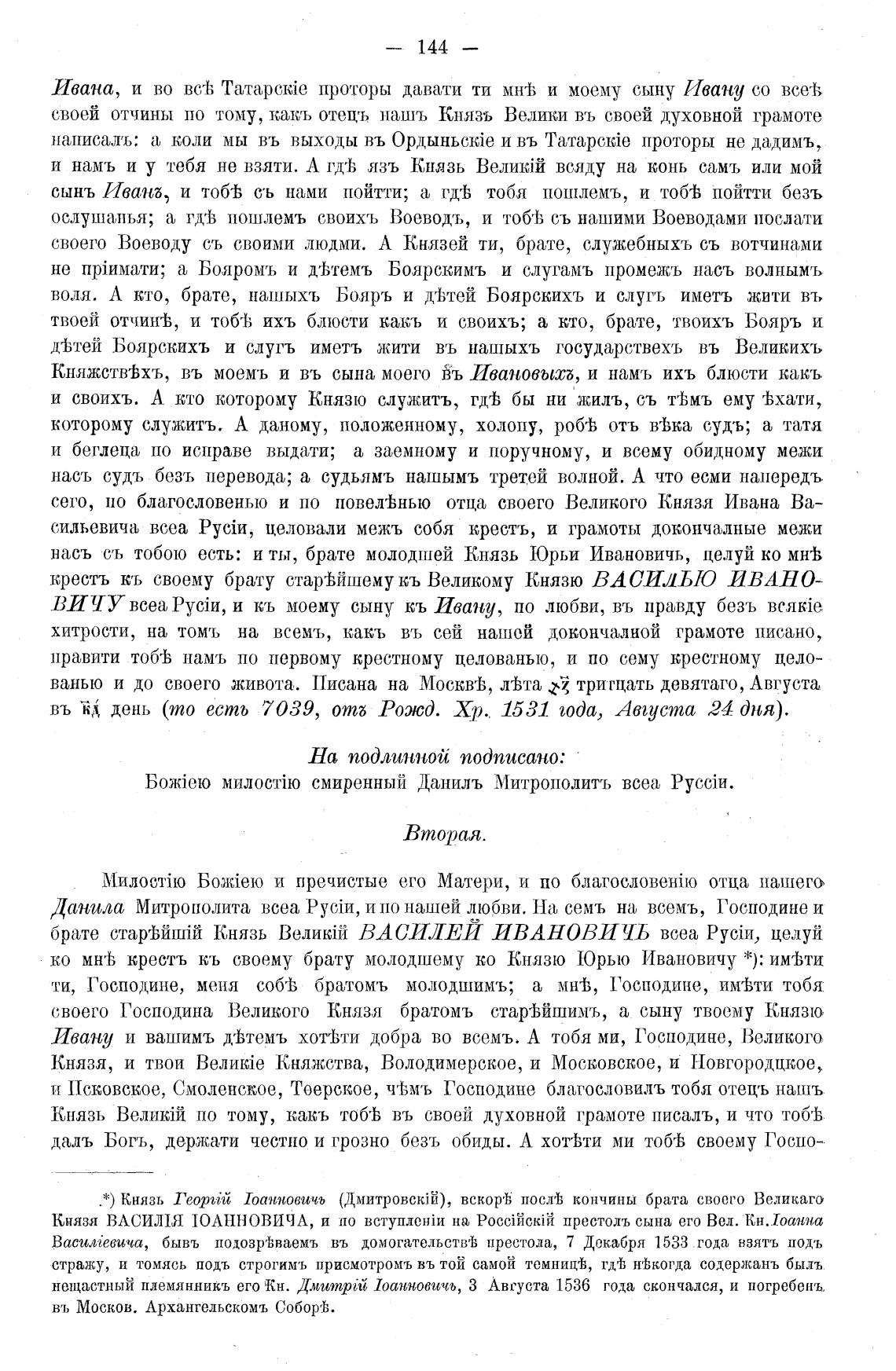 Князь по тому, какеь тол въ своей духовной грамоте писалъ, и что тоб'Ь