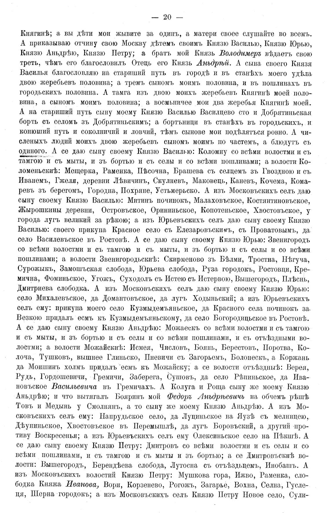 село Василевъское въ РостовеЬ. А се даю сыну своему Князю Юрью: Звенигородъ