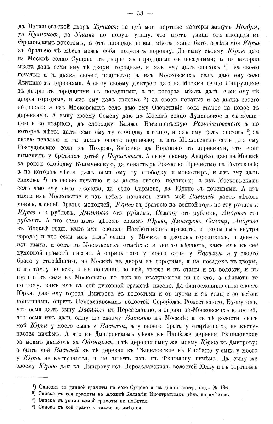 деревнями. А сыну своему Семену даю на Москвт; селцо Луциттьское и съ мелни-