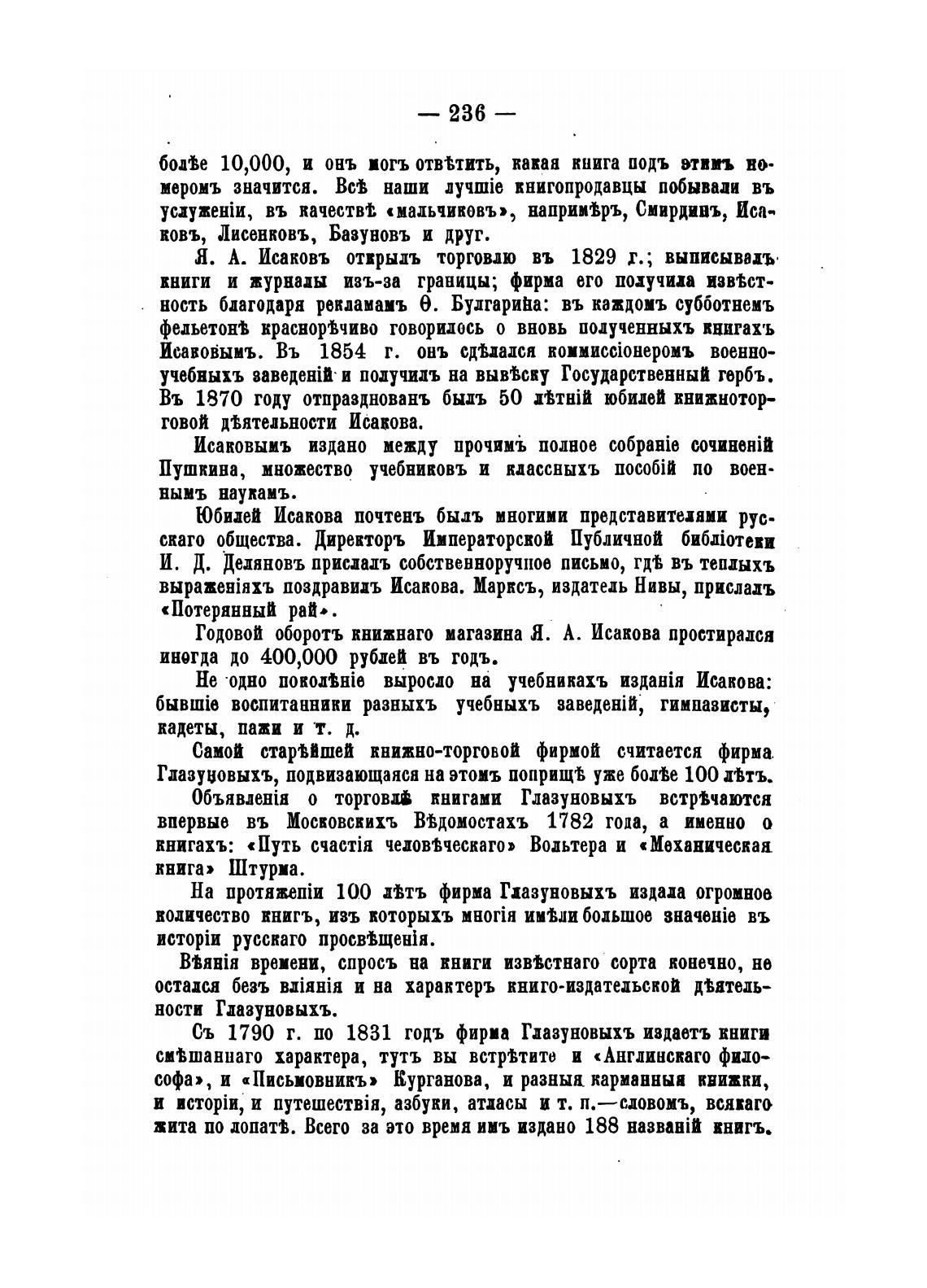 Я. А. Исаковъ открыдъ торговлю въ 1829 Х.; выписываиъ.