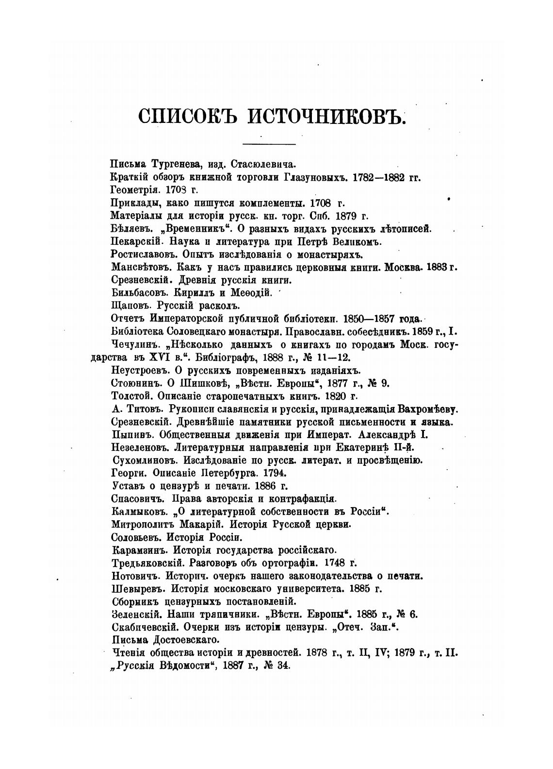 СПИСОКЪ источниковъ.